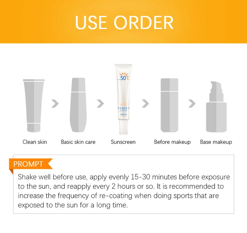Название продукта: Восстанавливающий солнцезащитный крем для ощущения водыСпецификация: 25 млВперед, чтобы охватить солнечный свет.Во время путешествия. Лучше увеличивать количество или повторно применять в обычное время.Светильник и увлажняющий крем не стимулируют и обеспечивают превосходную защиту от солнечных ожогов и старения кожи, вызванных солнцем.Поместите необходимое количество продукта в ладонь и равномерно распределите его на лицо. Шея и другие части будут подвержены воздействию солнца.Как использовать:1. Перед выходом. Очистите лицо и увлажните его.2. Нанесите необходимое количество продукта равномерно на лоб. Лицо. Нос, подбородок и другие открытые области.3. Нанесите небольшое количество продукта равномерно на шею.4. Нанесите необходимое количество продукта равномерно на руки. Руки и другие открытые зоны.5. При ношении юбки или шорт. Нанесите необходимое количество продукта на ноги, которые будут подвержены сумме.