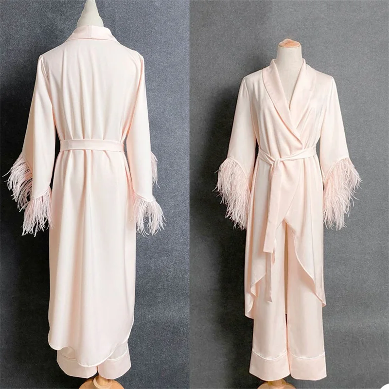 2 предмета в комплекте, одежда для сна, Для женщин шелковый халат одежда с длинным рукавом свадебные халат по индивидуальному заказу Ночная Пижама