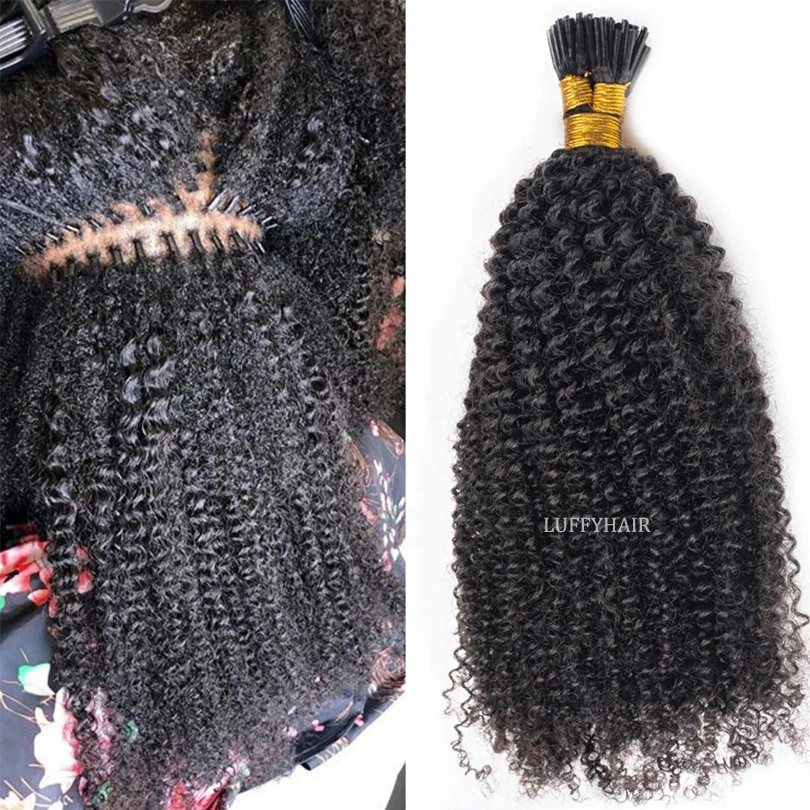 4B 4C афро кудрявые I-образные волосы для наращивания, предваритель...