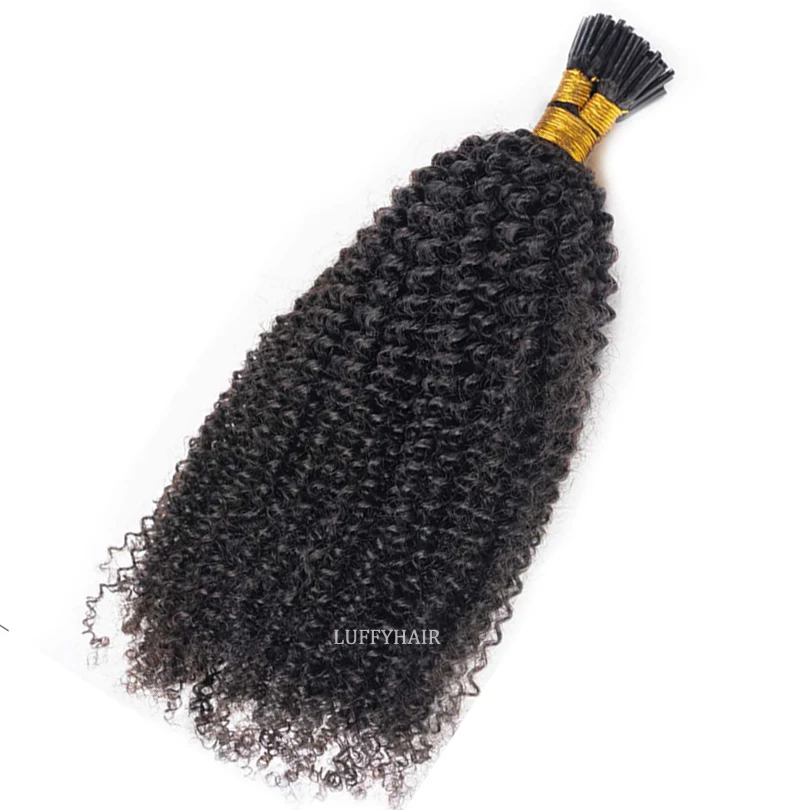 Волосы с микрофиброй I-Tip, кудрявые, 1 глокон, 100 г, монгольские, кудрявые, I-образные, цвет волос 1 #2 #4 #