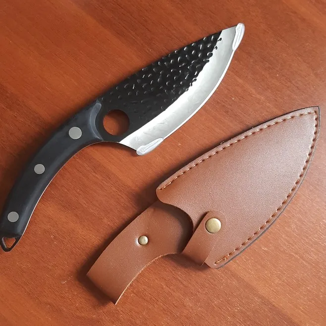 Нож для склеивания с отверстием для пальцев, кованый кухонный нож из нержавеющей стали, нож для мясорубки, нож для шеф-повара с ножом 6 типов ножей с отверстием для пальцевМатериал лезвия: нержавеющая стальМатериал ручки: дерево Посылка включает: Только ножИли только оболочкаИли нож с оболочкой (по вашему выбору)