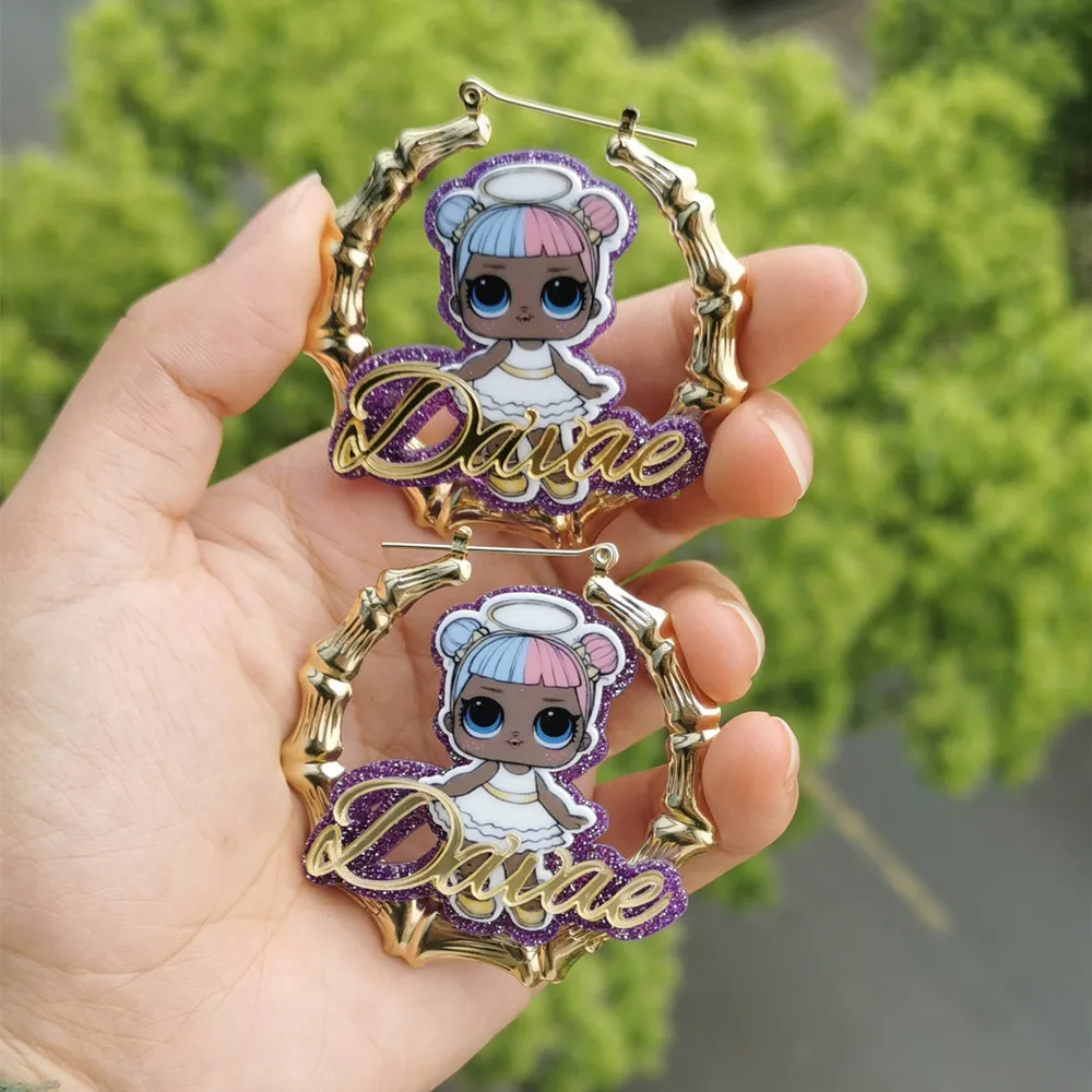 Новинка 2021, детский индивидуальный набор, мультяшный персонаж, имя, серьги, ожерелье, браслет, Детская личность, милое имя, набор, подарок для девочки