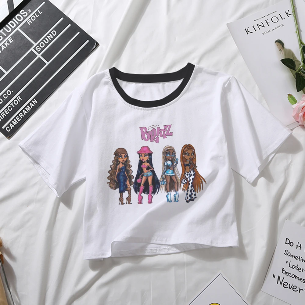 Женский короткий топ с коротким рукавом, винтажный топ в стиле аним...
