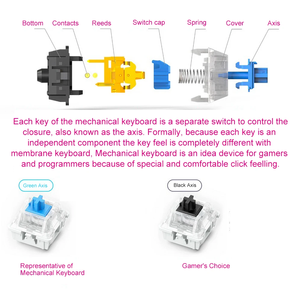 ZK-4 104 шт./компл. проводной светодиодный светильник игровая механическая клавиатура для настольного компьютера Технические характеристики: Изготовлен из высококачественных материалов, клавиатура долговечна в использовании. Светодиодный светильник RGB делает вашу клавиатуру стильной. Эргономичные клавиши и расширенные игровые клавиши позволяют быстро и легко управлять и уменьшать усталость. Наименование товара: Проводная Механическая клавиатура Материал: пластик, металл интерфейс: Проводная USBKeycap Тип: ПБТ материал механического вала Корпус: зеленый шафтсовместимые системы: для Win XP/7/8/10, для MAC 10,2 и выше особенности: светодиодный светильник RGB, проводной, удобный в использовании размер: 44 см x 18 см x 5 см/17,32 "x 7,09" x 1,97 "(прибл.) примечания: благодаря светильник и экрана Цвет Товара может быть s светильник ly отличается из-за характеристик монитора компьютера. Пожалуйста, учитывайте разницу в размере s светильник из-за различных измерений вручную. Посылка включает в себя: 1 x проводной механический Keyboard1 x Руководство пользователя