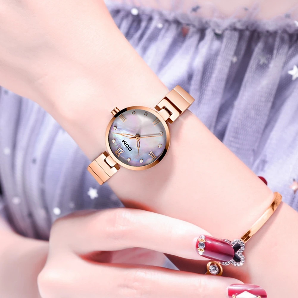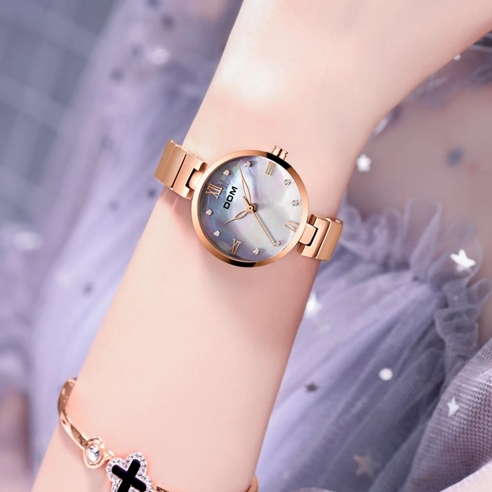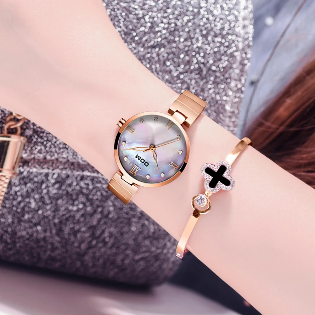 DOM Роскошные модные женские часы из розового золота, женские часы, кварцевые наручные часы Водонепроницаемый G-1267