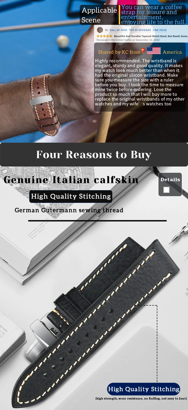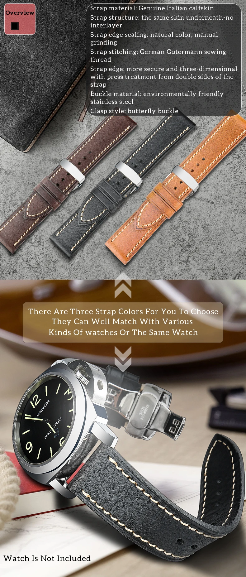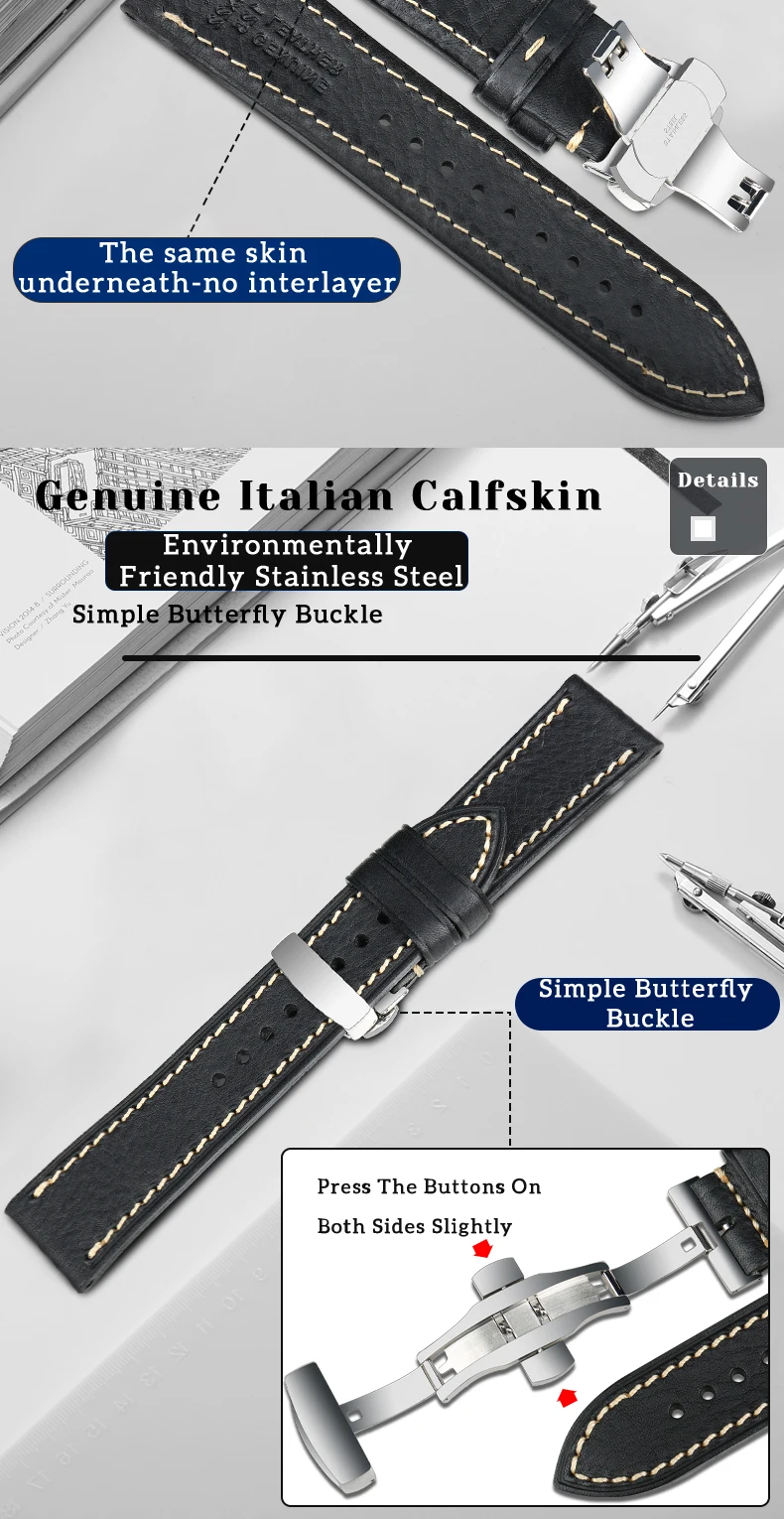 Ремешок для часов из телячьей кожи, 18-26 мм