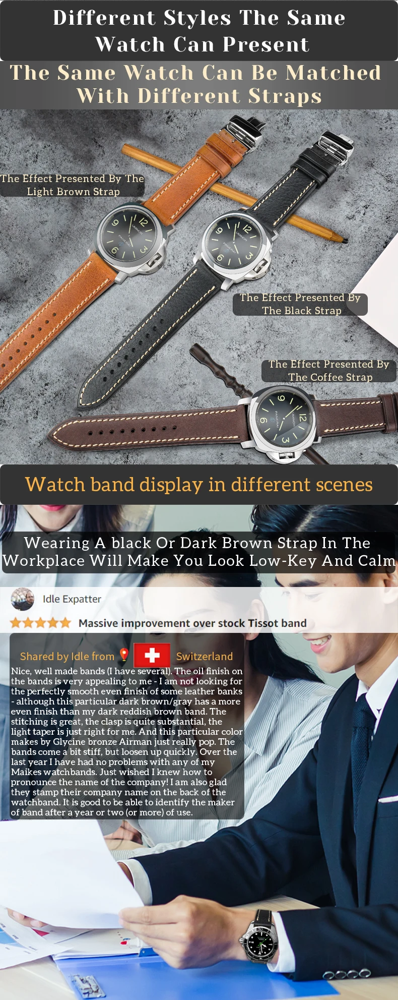 Ремешок для часов MAIKES из натуральной телячьей кожи, браслет с за...