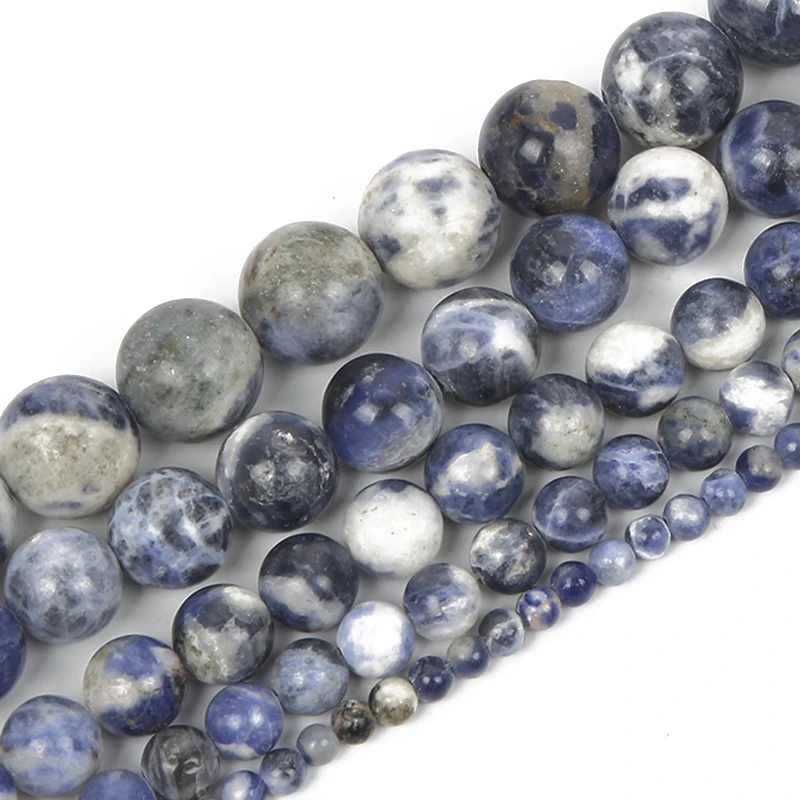 Бусины круглые для украшений сделай сам, изящные синие прожилки из натурального камня, для изготовления ювелирных изделий, рукоделия, нити 4-12 мм