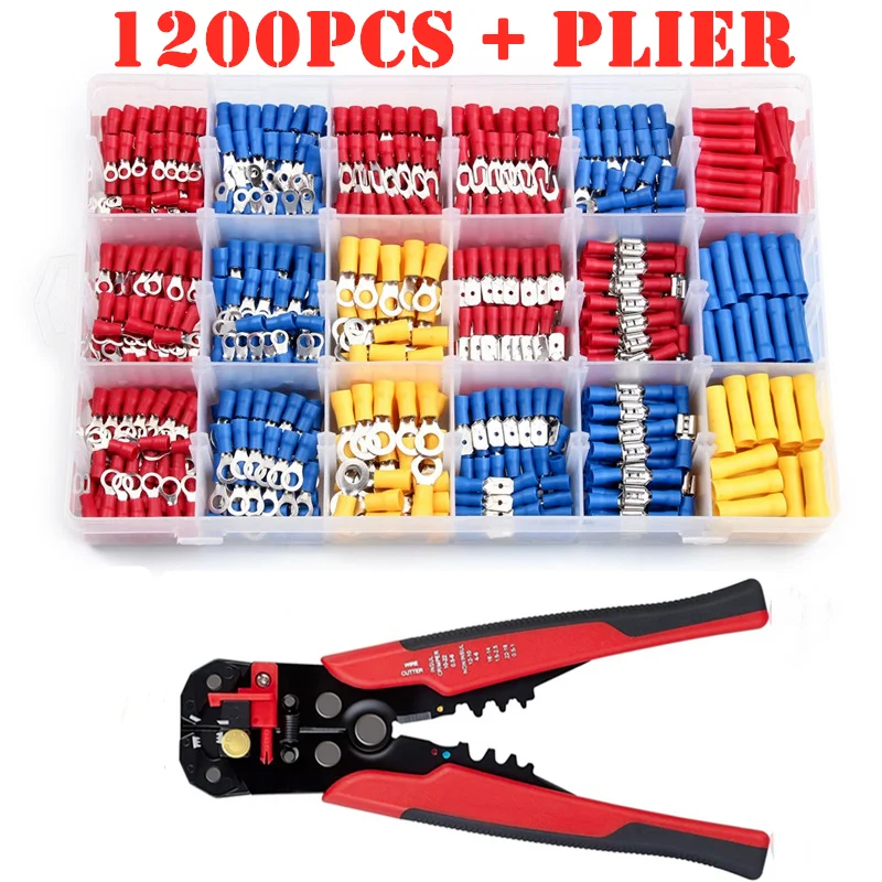 Соединитель для электрического провода, 1200 шт., ОБЖИМНАЯ лопатка, стыковое кольцо, вилка, наконечники, накатанные Клеммы + самостоятельное регулировочные плоскогубцы