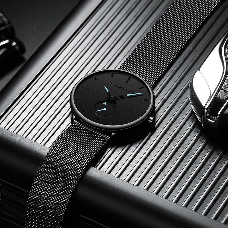 Часы Hannah Martin Мужские кварцевые, простые деловые, с японским механизмом Move t, с сетчатым ремешком из нержавеющей стали, водонепроницаемые, подарок на день рождения