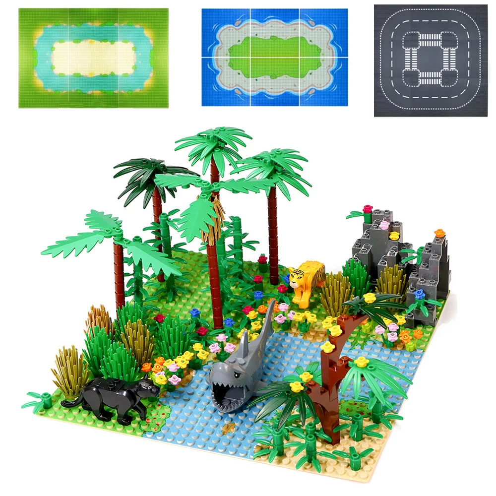 Кубики MOC Placas 32x32, базовые плиты для дороги, улицы, трава, река, морской остров, Классические игрушки