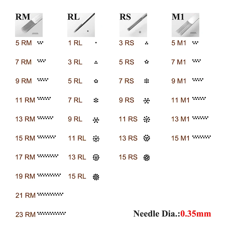 Одноразовые стерилизованные иглы для тату RL RS RM M1, иглы для микроблейдинга, перманентного макияжа, Изогнутые Круглые лайнерные иглы, 510 шт.