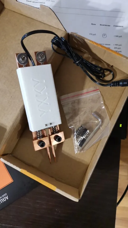 отправили быстро, дошло довольно быстро, комплект полный, есть запчасти, это радует, из минусов.. сами электроды странные, при первом же контакте появился цвет побежалости, и они прилипли к поверхности, начал разбираться.. в описании есть такая строчка медь с аллюминием.. придётся менять на чистую медь. с продавцом не общался не было необходимости. всем удачного дня и приятных покупок.