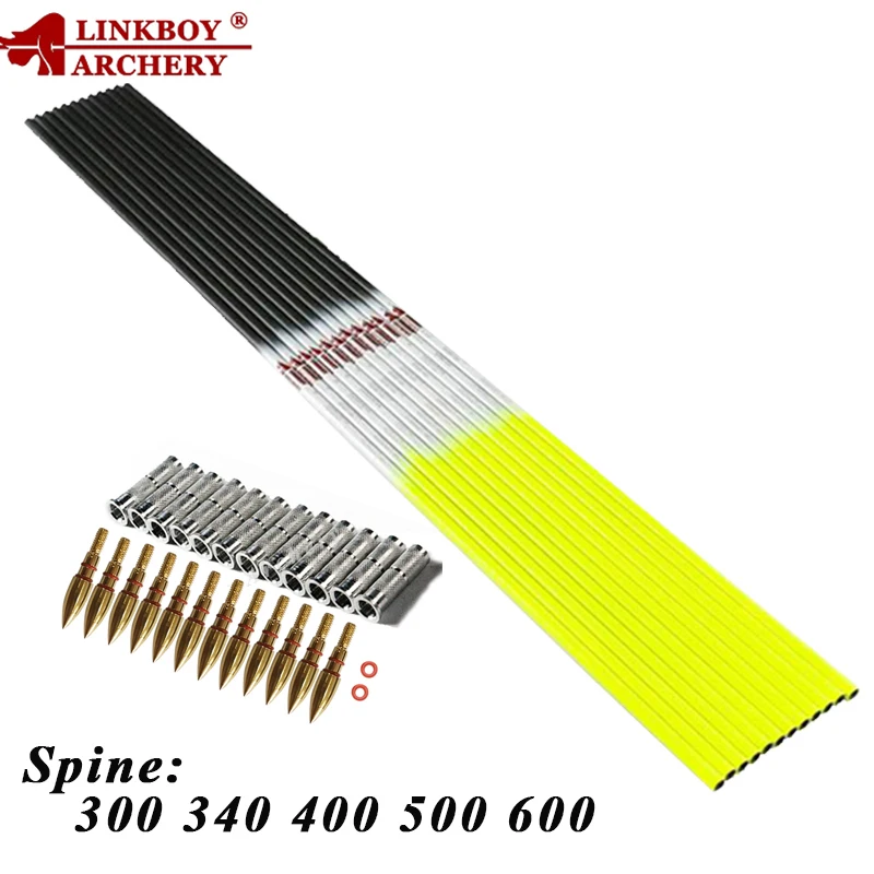 Стрелы для стрельбы из лука Linkboy, вал диаметром 6,2 мм, желтая рукоятка, 12 алюминиевых вставок и 100 г наконечников для блочного Лука, охоты