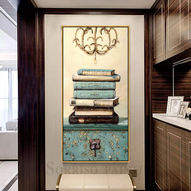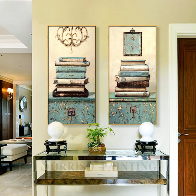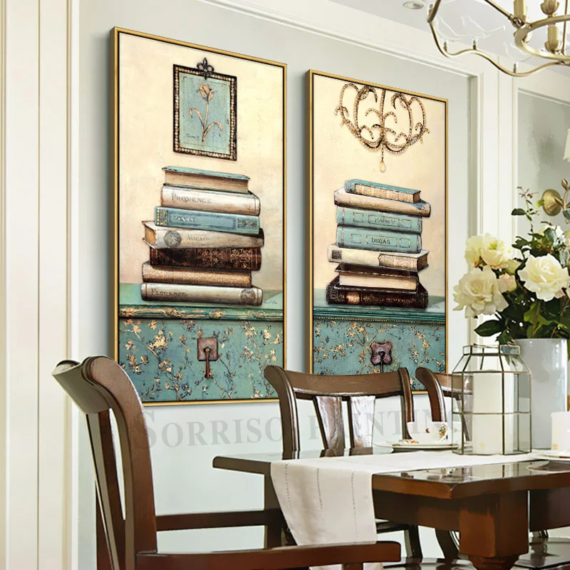 Европейская ретро пасторальная книга натюрморт Декор для дома крыльца холст живопись коридор Настенная картина для прихожей картины для гостиной
