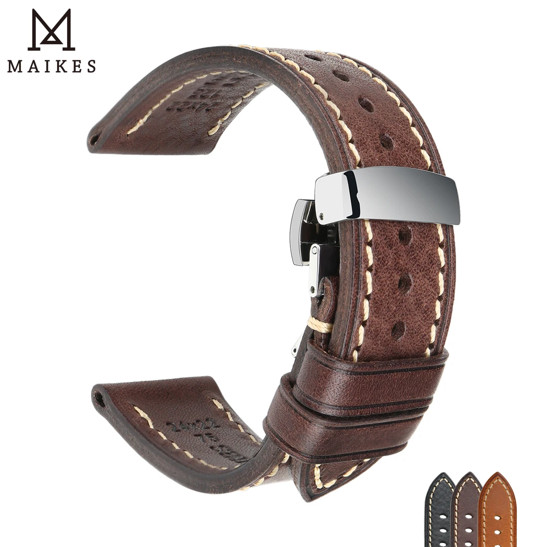 Ремешок кожаный для наручных часов, коричневый браслет из натуральной итальянской телячьей кожи, с прочной автоматической пряжкой-бабочкой, 18-26 мм