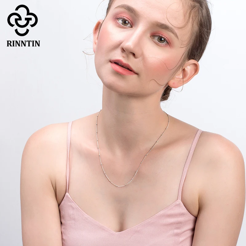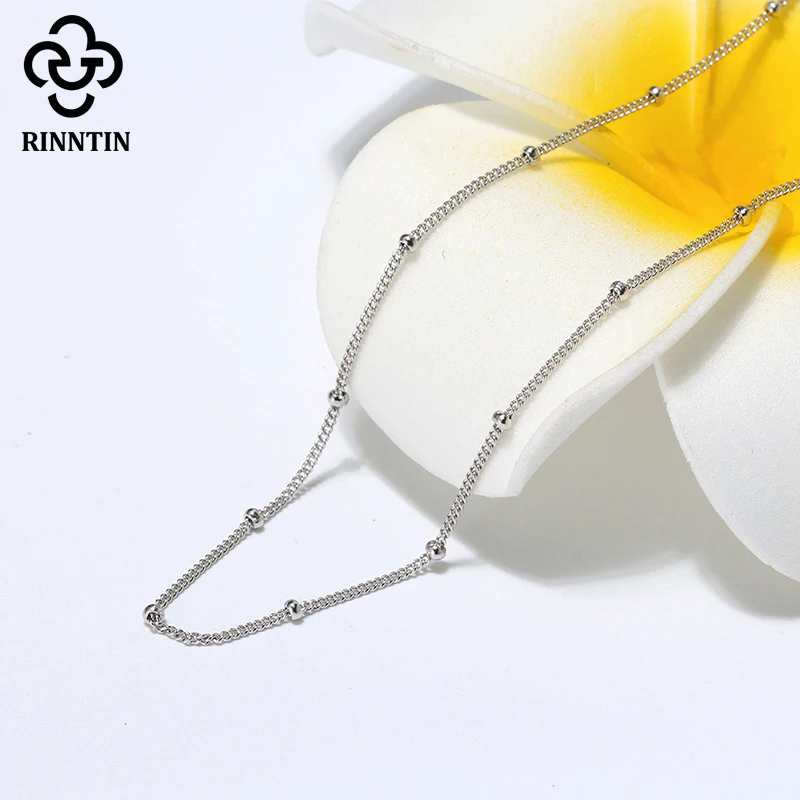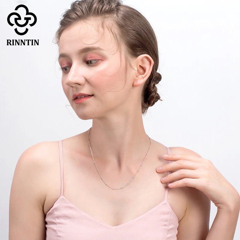 Женская цепочка с бусинами Rinntin, ожерелье из стерлингового серебра 925 пробы, цепочка с шариками 2,0 мм на шею, элегантное украшение SC22