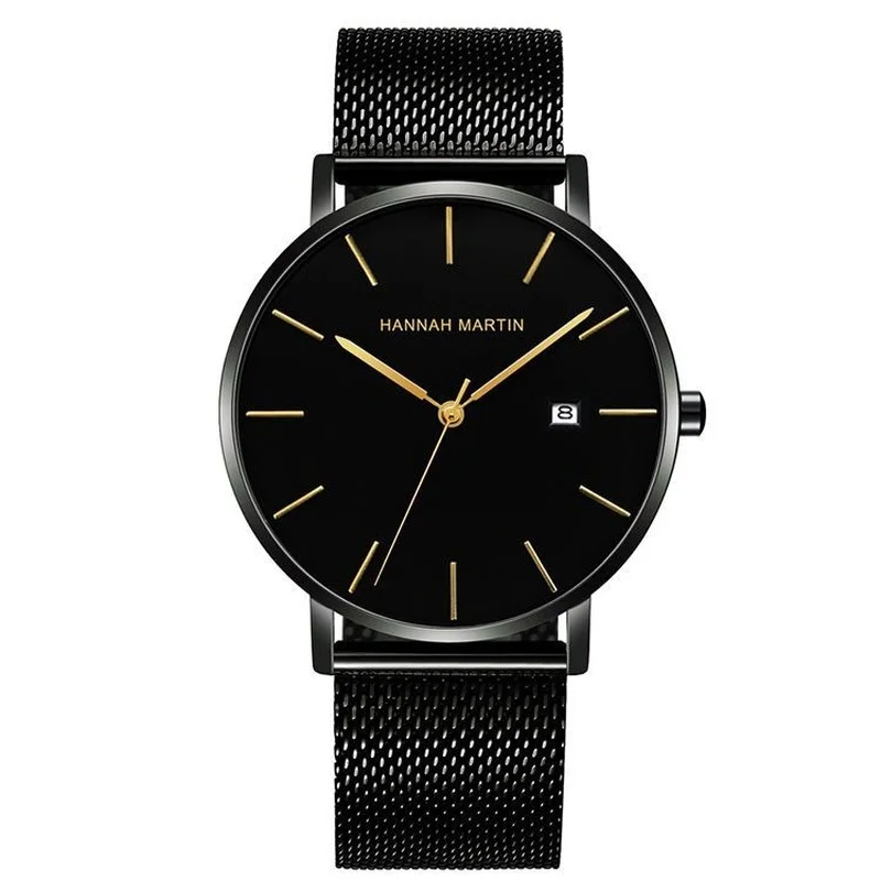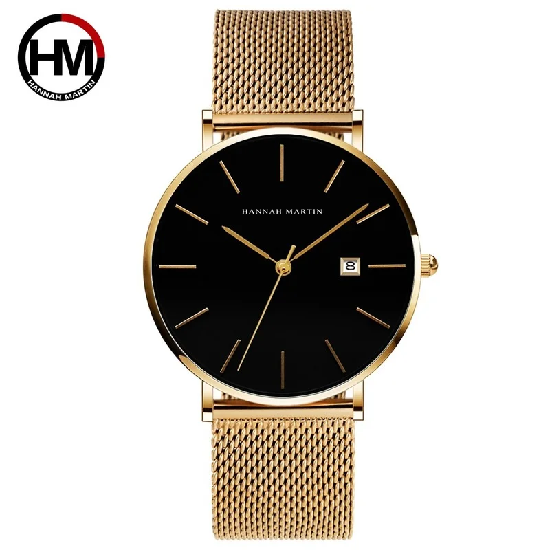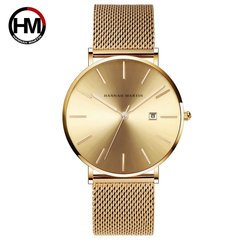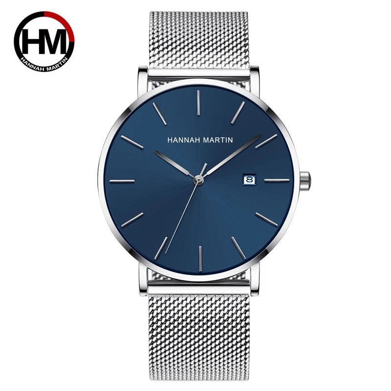 Часы Hannah Martin мужские с японским механизмом, многофункциональные кварцевые Стальные сетчатые наручные, с календарем, ультратонкие водонепроницаемые, подарок для мужчин