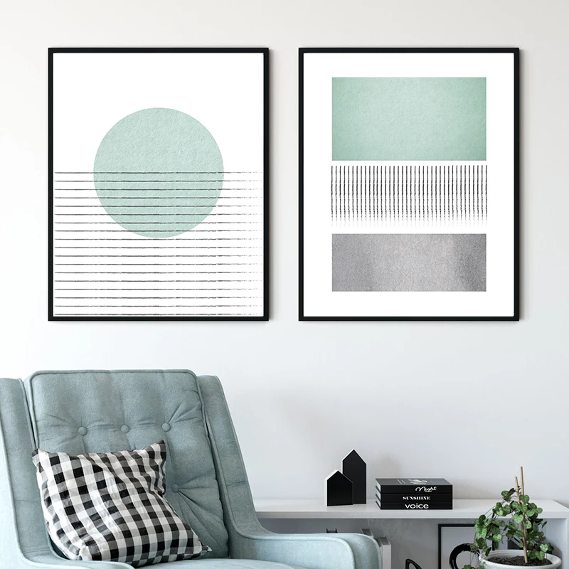Зеленогосерого цвета, абстрактных геометрических репродукции серебристое Современные настенные картины Nordic Плакаты минималистское полотно домашний декор