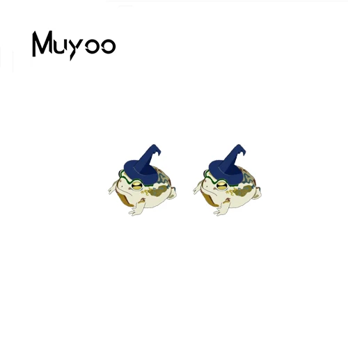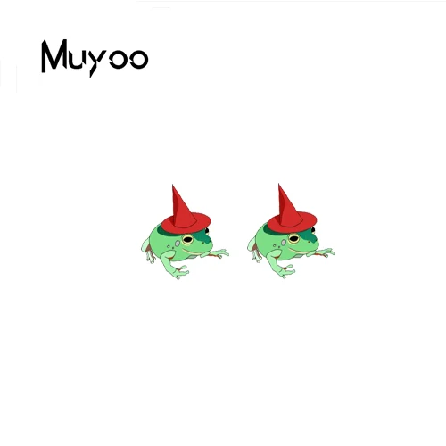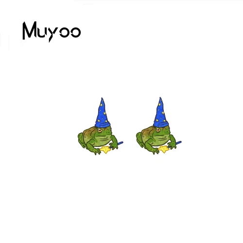 Серьги-гвоздики из акрила в виде забавной жабы, волшебника, лягушки в шляпе, эпоксидные серьги ручной работы