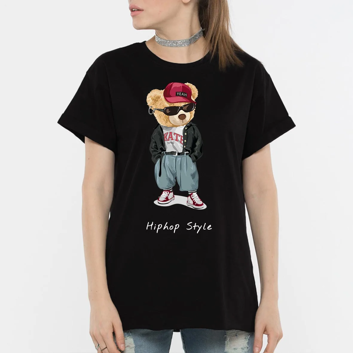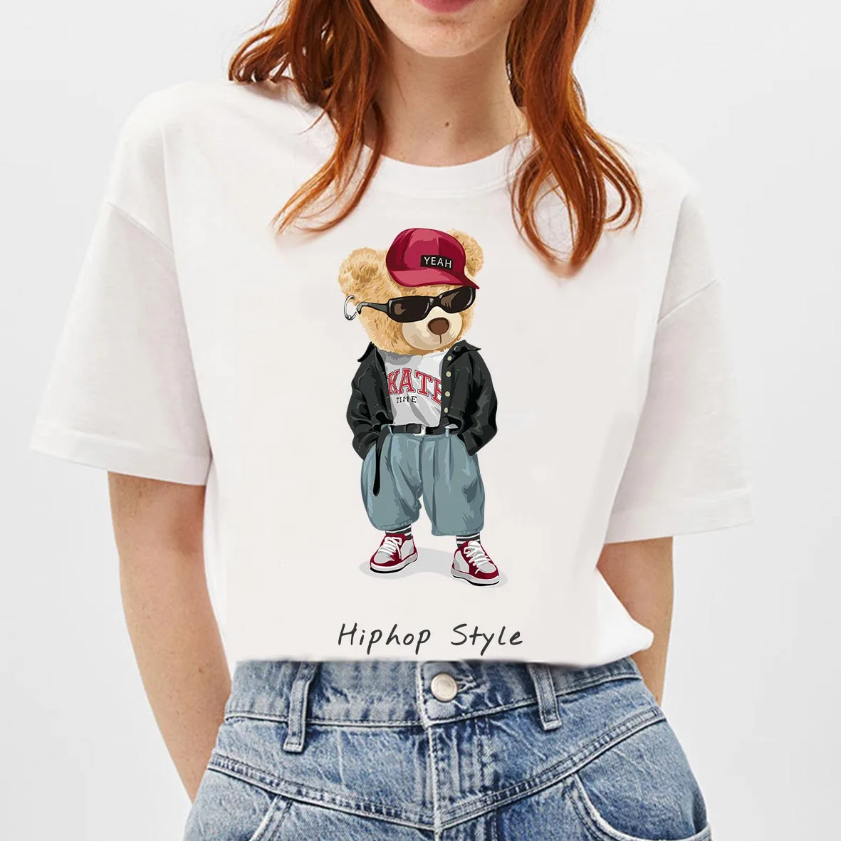 Минималистичный модный топ BLINGPAW в стиле ретро, в стиле хип-хоп, мишка тедди, с коротким рукавом, футболки с круглым вырезом, повседневный 100% хлопок, Харадзюку