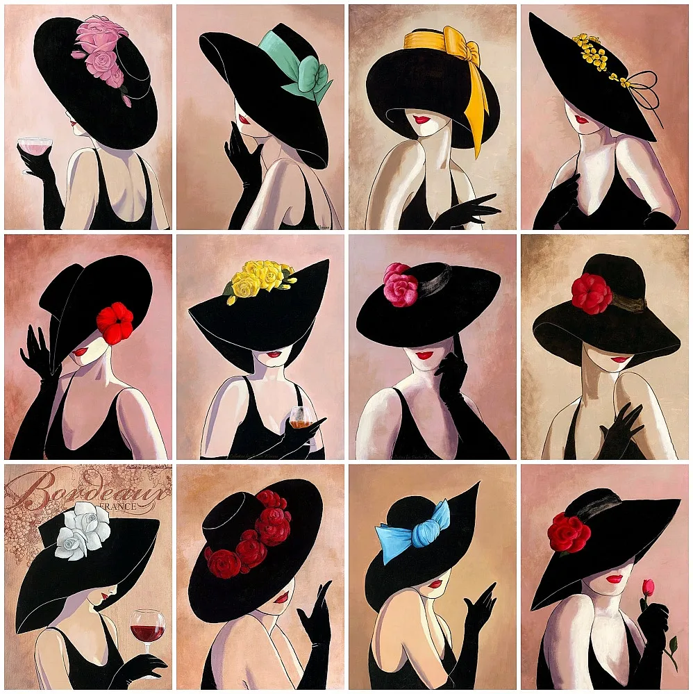 Алмазная вышивка, вышивка крестом, женщина с шляпой, мозаика, подарок ручной работы, алмазная живопись, портрет, стразы, Франция, красота icon star icon star icon star icon star icon star