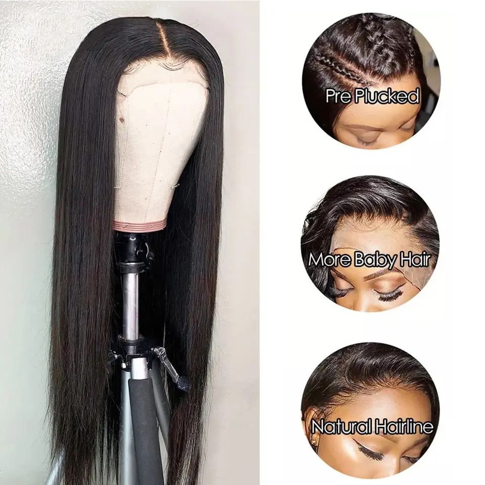 Прямые волосы Malaika 13x 4, передние парики из человеческих волос ...