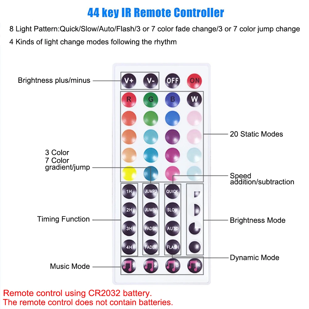 Умный Bluetooth 5050 RGB светодиодный светильник с полосками s 16,4 футов 32,8 футов 49,2 футов управление приложением светодиодный светильник с полосками набор цветов меняющий ленточный светильник s 12 В DC ПИТАНИЕ музыка синхронизация веревка светильник s комплект с 44 клавишами ИК-пульт вечерние украшения для домаОписание:Особенности:16,4/32,8/49,2 фута ленточный светильник s с 90/180/270 5050 SMD RGB светодиодами, достаточно долго, чтобы достичь вокруг вашей комнаты и достаточно яркий, чтобы светильник все место вверх.В приложении с лаконичным интерфейсом цвета можно изменить по команде, а также с регулируемой скоростью, заданными режимами стиля, 1%-100% общий уровень яркости и настройками таймера.Удобный для управления с Bluetooth APP, 40-ключ ИК-пульта дистанционного управления и простой кран контроллер коробки, сделай сам, более чем 16 миллионов цветов, регулировки яркости и скорость, как вам нравится. Круговой ИК-приемник может получать сигнал от 360 ° в пять метров. (приложение поддерживает IOS 8,0 или выше/Android 4,3 или выше)Со встроенным высокочувствительным микрофоном в трехкнопочном контроллере светодиодные музыкальные огни можно синхронизировать с музыкой и окружающим звуком, хотите ли вы начать сумасшедшие вечерние или побаловать себя захватывающим, интенсивная Компьютерная/видео игра.Можно легко наклеить на сухую, чистую и гладкую поверхность с помощью прилагаемой прочной клейкой ленты. Слишком долго? Благодаря простому вырезу каждого 3 светодиодный индикатор помогает безопасно работать, чтобы получить желаемую длину, не повреждая полосу (не соединяйте ее снова и снова).Вы сможете легко осветить большие пространства ярким, красочным освещением во время праздников, вечеринок или фильмов. Отлично подходит для украшения вашего дома (Е. g. Столовая, кровать, наверху, кухня, стол, сад и гостиные)Спецификация:Входное напряжение: AC100-240V, 50-60 ГцВыходное напряжение: DC12VМодель адаптера: DC12V3AСветодиодный светильник в полоску цвет: RGBКласс водонепроницаемости: IP20-Non-водонепроницаемый, IP65-водонепроницаемыйВодонепроницаемый светодиодный ленточный светильник Длина: 5 м/16,4 фута 1 Катушка, 10 м/32,8 фута 1 Катушка, 15 м/49,2 фута 2 катушкаВодонепроницаемый светодиодный ленточный светильник Длина: 5 м/16,4 фута каждая катушкаСветодиодный ленточный светильник Кол-во светодиодов: 18 светодиодов/мМощность: 7,5 Вт/мКак подключить светильник:В первую очередь связаться с красный, зеленый и синий светодиодный светильник панели 4-контактный разъем, а затем Подключитесь к соединительное устройство адаптер постоянного тока. Пожалуйста, поместите батарею CR2032 на заднюю часть инфракрасного пульта дистанционного управления или загрузите приложение, чтобы подключить светильник через Bluetooth, чтобы он мог работать.Посылка включает в себя:1 или 2 или 3 * RGB светодиодный светильник1X 4 контактный разъем1X адаптер питания1X Мини-контроллер Bluetooth1X 44Key IR пульт дистанционного управления (батарея CR2032 не входит в комплект)