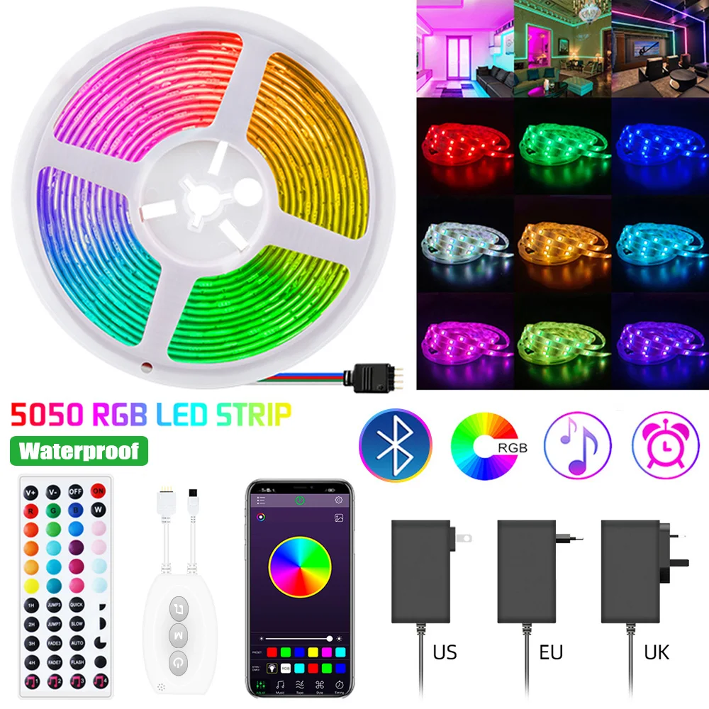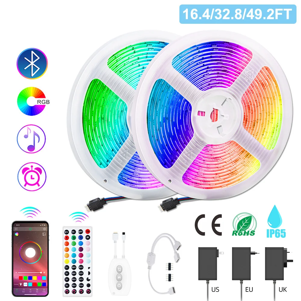 Водонепроницаемый светодиодный RGB полосы светильник 12V 5 м-15 м Bluetooth с регулируемой яркостью гибкая лента светильник s Luces светодиодный 5050 полосы лампы Подсветка светильник Спальня