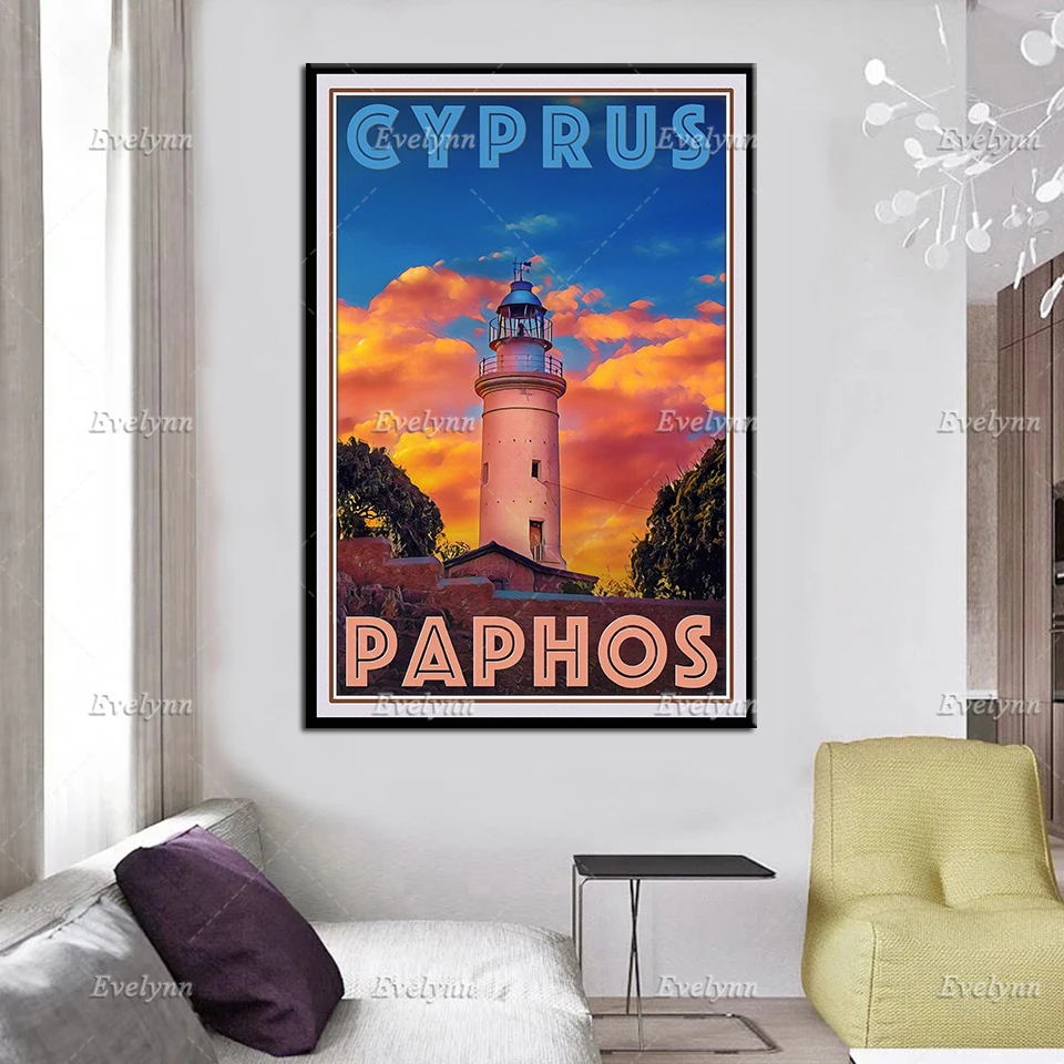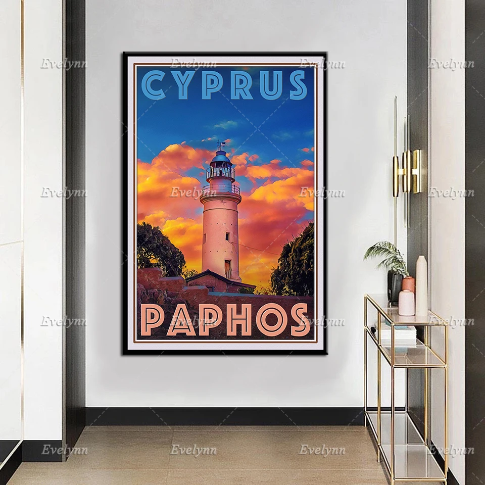 Ретро Винтаж Стиль плакат Paphos Кипр постеры с масляной живописью и печать на холсте стены искусства модульная фотографии домашний декор