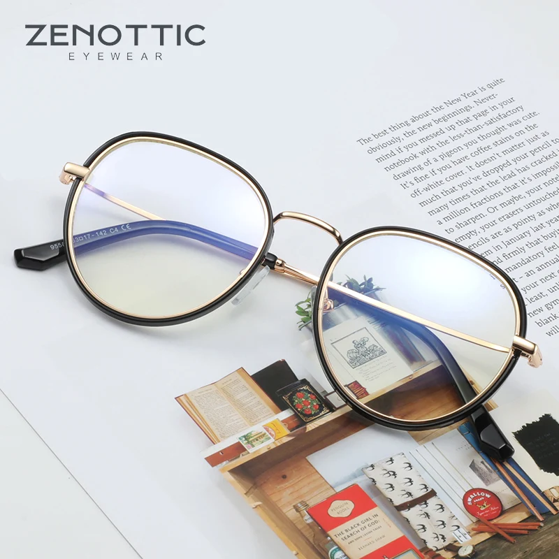 Очки ZENOTTIC компьютерные для мужчин и женщин, оптические аксессуары в круглой металлической оправе, с защитой от сисветильник, роскошные брендовые дизайнерские очки для близорукости