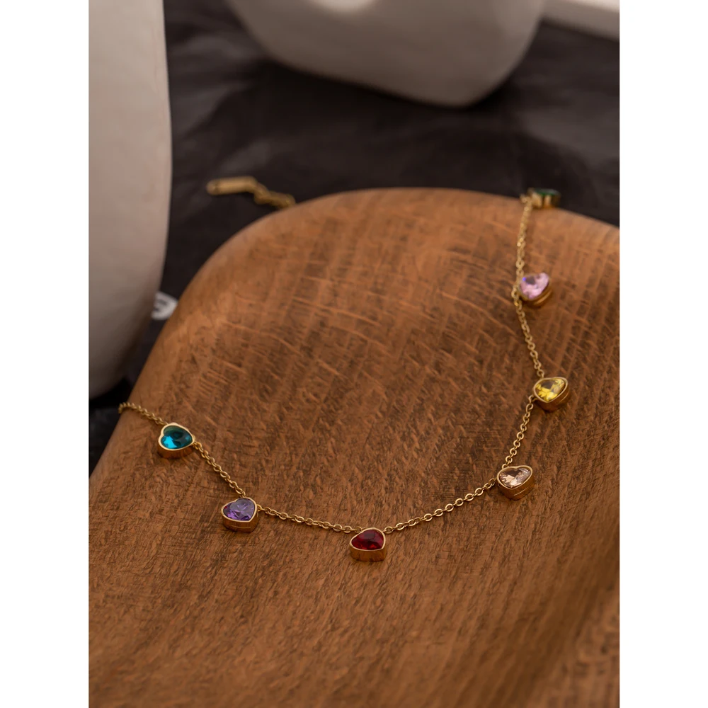 Изысканное цветное ожерелье Yhpup с кубическим цирконием в форме сердца для женщин из нержавеющей стали Изысканная фотография 2021 подарок