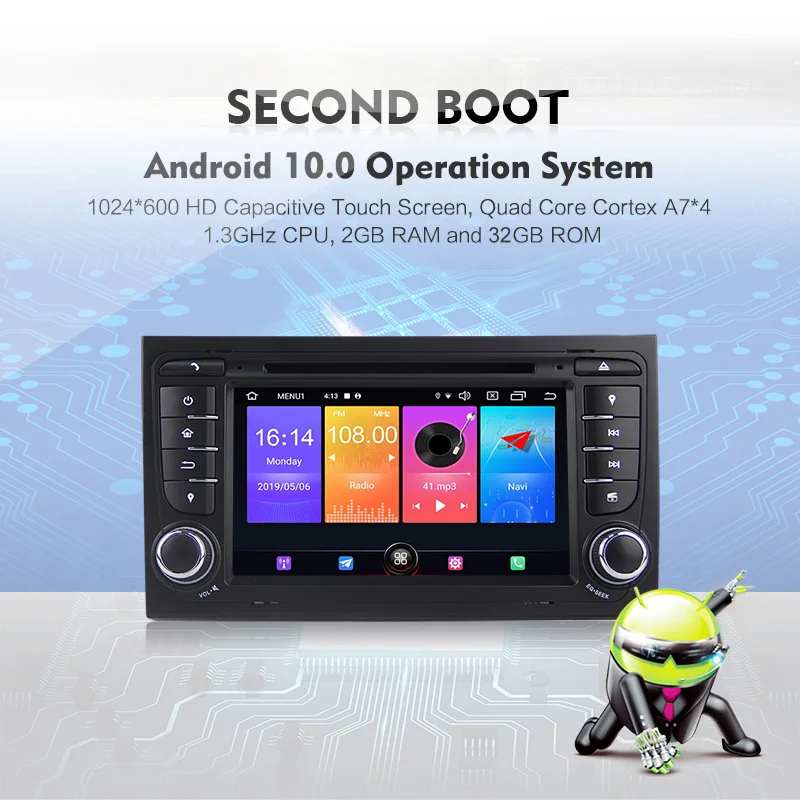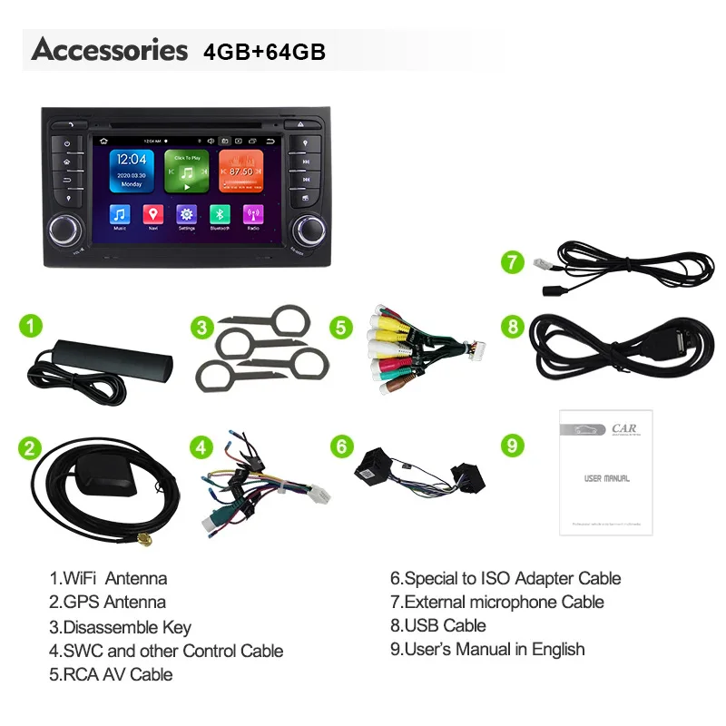 Подарки: 1. Бесплатная карта 2. Бесплатная камера заднего вида ключевые особенности: 1. Встроенный Carplay, не нужно использовать ключ carplay, подключите нашу машину к вашему смартфону напрямую 2. Быстрая загрузка, только две секунды, машина начнет 3. Функции ОС Android 10: DVD / GPS / Bluetooth/Радио/RDS/встроенный WiFi/зеркальная связь/DSP/Встроенный CarPlay / USB / SWC / AUX in/игры/Встроенный Can-in автобус/8 цветов Кнопка светильник видео-вход: аудио-вход камеры: AUX1 видео-Выход: video1/video2 аудио-выход: FL/FR/RL/RR/сабвуфер BT версия: 4,0 этот блок подходит для: audi/A4/B6(8E/8ч (2002,2003,2004,2005,2006) Audi/A4/B7(8E/8н)(2004-2008) Audi/S4/B7(8E/8н)(2005-2008) Audi/S4/B5(8E/8н)(2003-2008) RS4(2002-2008) RS4/B7/(8E)(2006-2008) Seat Exeo(2008 2009 2010 2011 2012) быстрая загрузка показывает (2 секунды обычно):