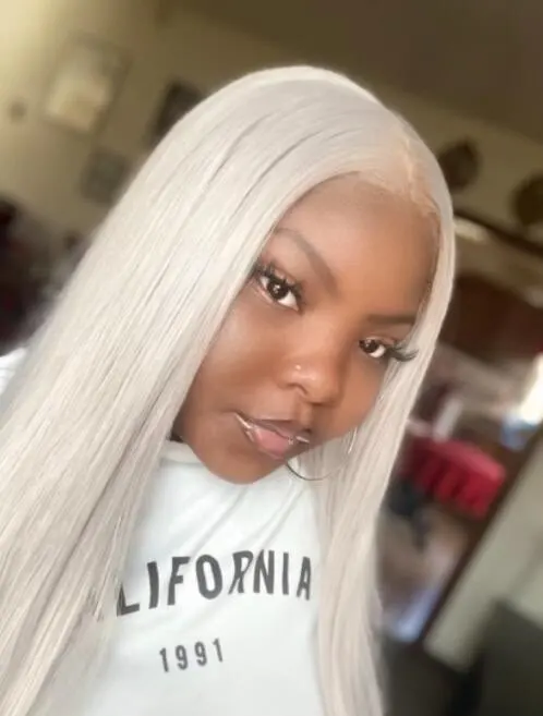 13x1 часть Синтетические волосы на кружеве парики из натуральных волос на кружевной основе бразильские прямые волосы серый Синтетические волосы на кружеве парик предварительно вырезанные серебристо-серый длинный дюймов Волосы Remy парики
