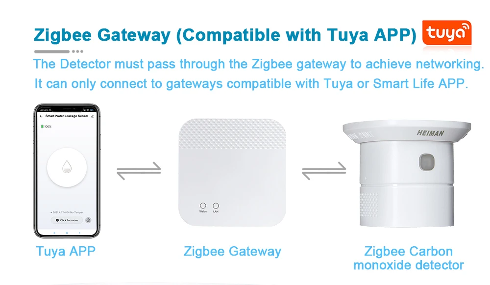 Он может подключаться только к шлюзам, совместимым с Tuya или Smart Life APP.