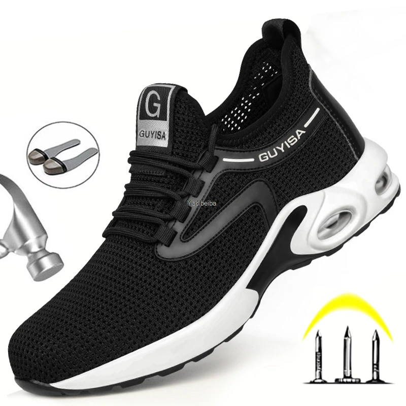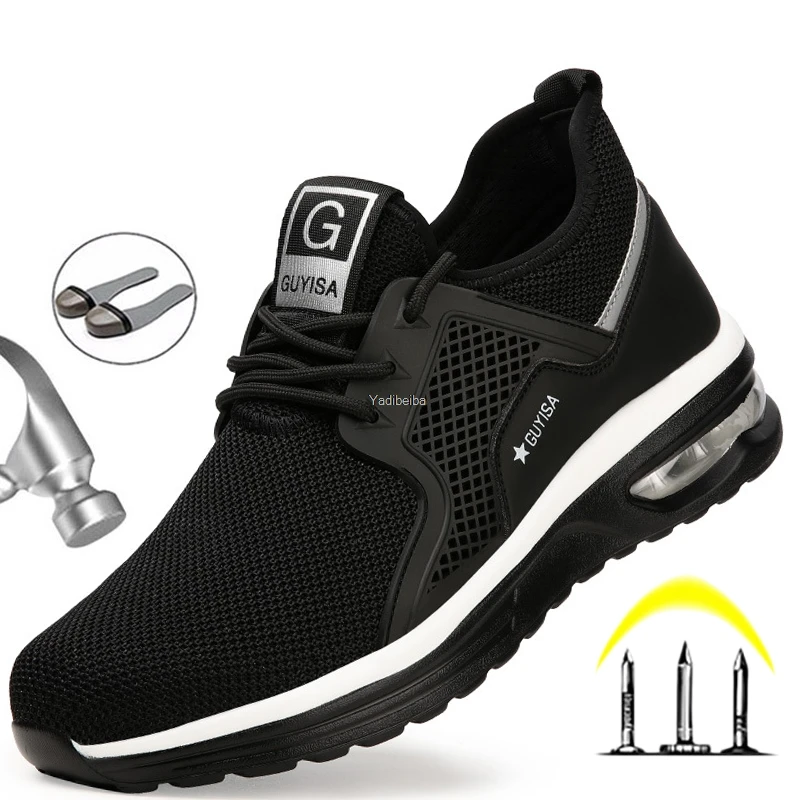 Нерушимой человек безопасная обувь светильник на нескользящей подошве для работы, Спортивная дышащая обувь Для мужчин Сталь носок не прокалываются, из сетчатого материала защитные сапоги из ПВХ
