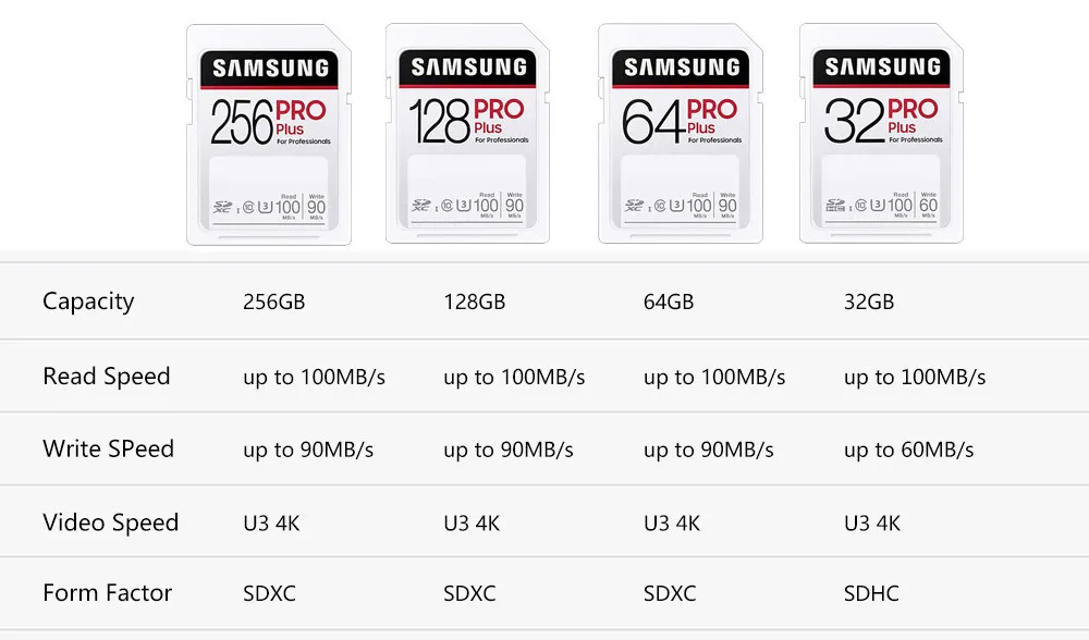 Оригинальная SD-карта SAMSUNG EVO PlusPRO, 256 ГБ, 128 ГБ, 64 ГБ, 32 ГБ, класс 10, карта памяти U1U3 SDHC SDXC для видеокамеры HD 4K