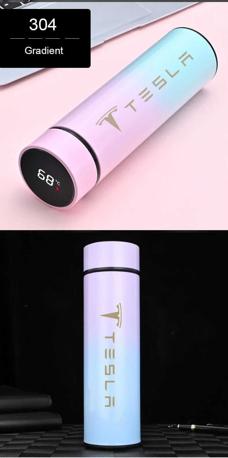 Умный термос с дисплеем температуры, Вакуумная чашка для воды из нержавеющей стали для tesla, модель 3, модель X, модель s, Y, автомобильные аксессуары