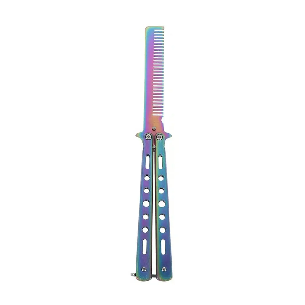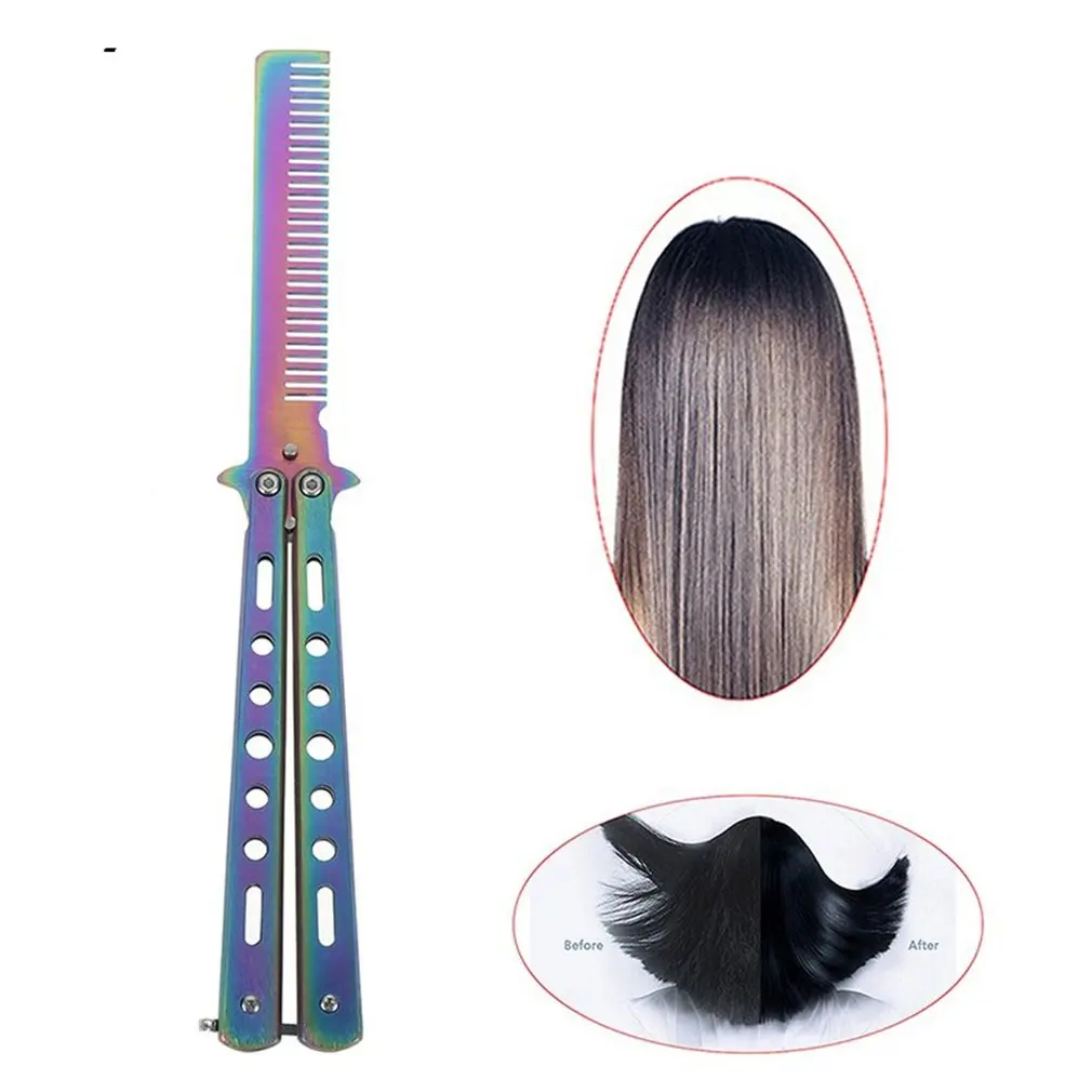 Профессиональный салон из нержавеющей стали, складной тренировочный нож в стиле бабочки, гребень, инструменты для укладки, черный/серебристый, крутой