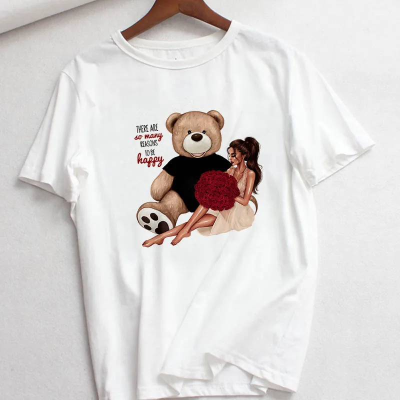 Футболка женская с мультяшным принтом, милая Дамская рубашка с граф...