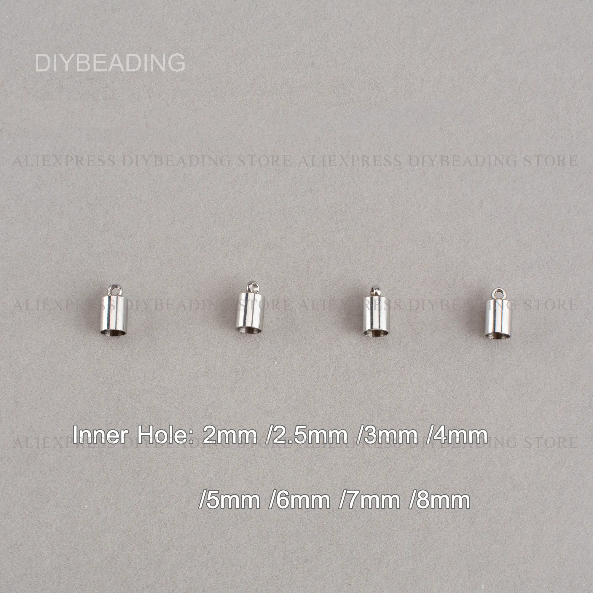 20-500 шт., Концевая заглушка для трубыКонцевая заглушка для кожаного шнураКонцевая Заглушка с кисточкой, верхняя петляобжимный концевик из нержавеющей стали (отверстие 2 3 4 5 6 7 8 мм)
