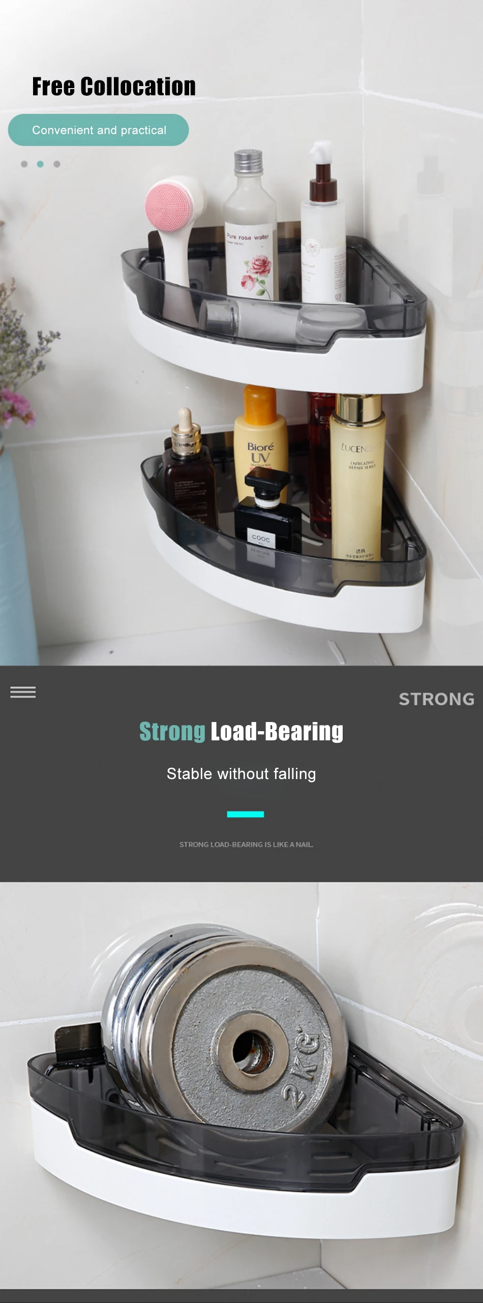 Треугольная угловая полка для ванной комнаты, стеллаж для хранения для кухни, органайзер, лосьоны для хранения, Бытовые аксессуары для ванной комнаты без сверла