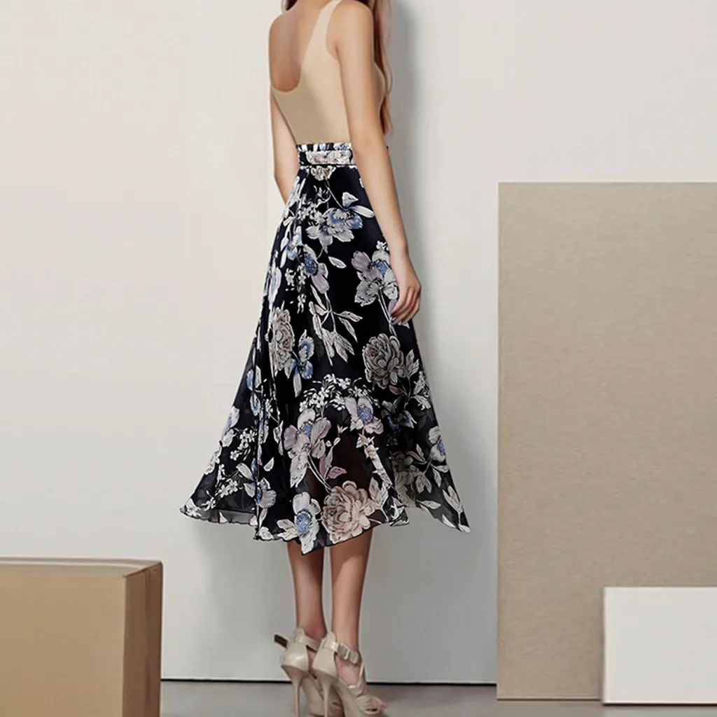 Юбка женская шифоновая трапециевидная с высокой талией и цветочным ...