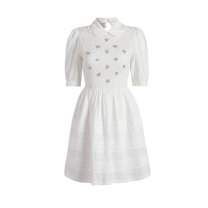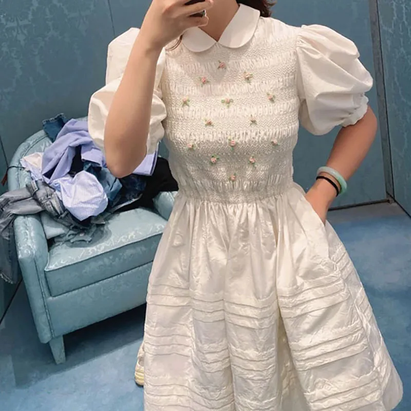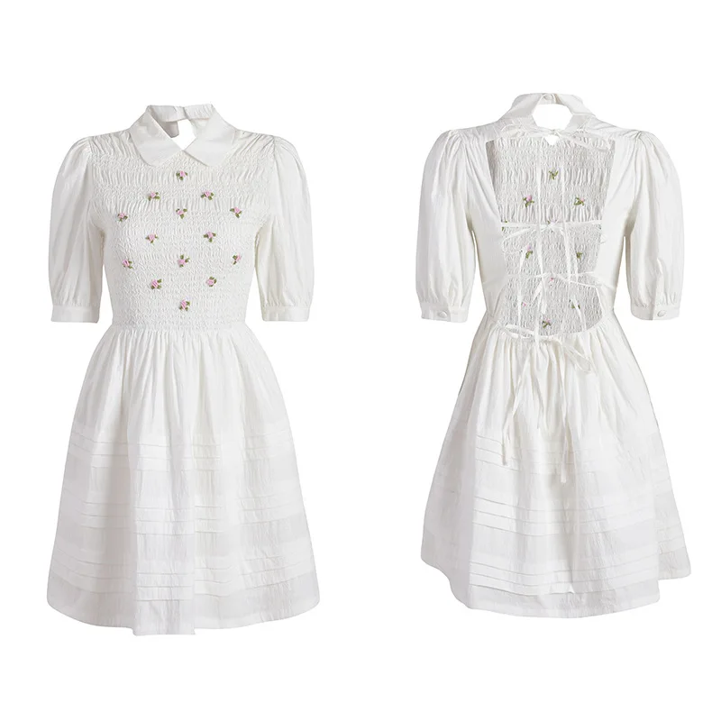 Соблазнительные очаровательные 3D белого цвета с цветочным принтом с пышными рукавами костюм с длинными рукавами и кукольным воротником Милая Кружевная юбка класса люкс с открытой спиной Бандажное платье миди платье праздничная одежда