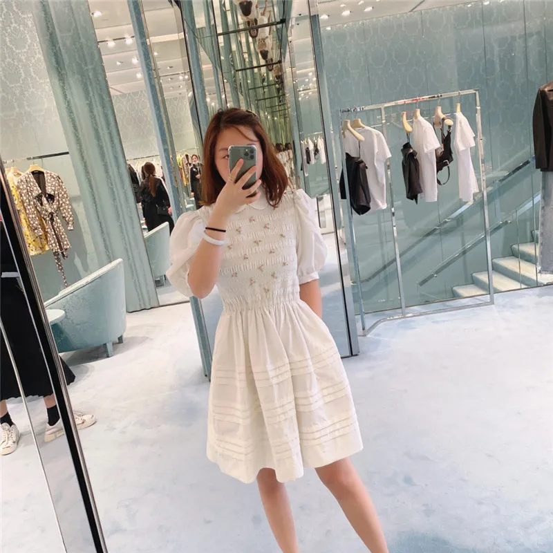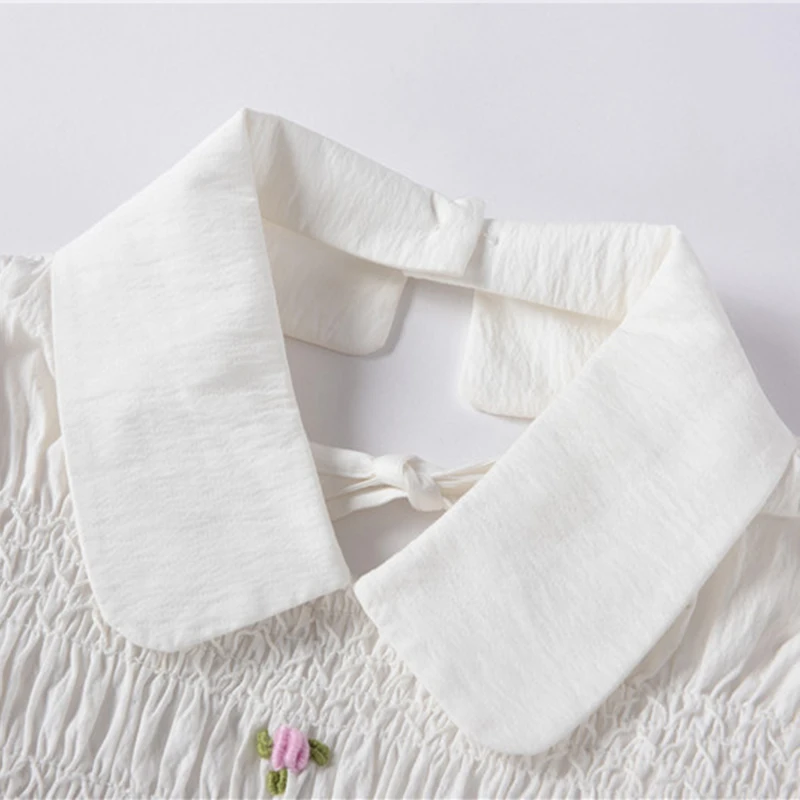 Подиумная рубашка с цветочной вышивкой, отложным воротником и корот...
