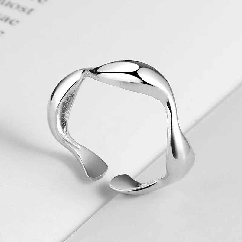QMCOCO женское серебряное Открытое кольцо в минималистическом стиле с неровными волнистыми узорами, ювелирные изделия, подарок на день рождения