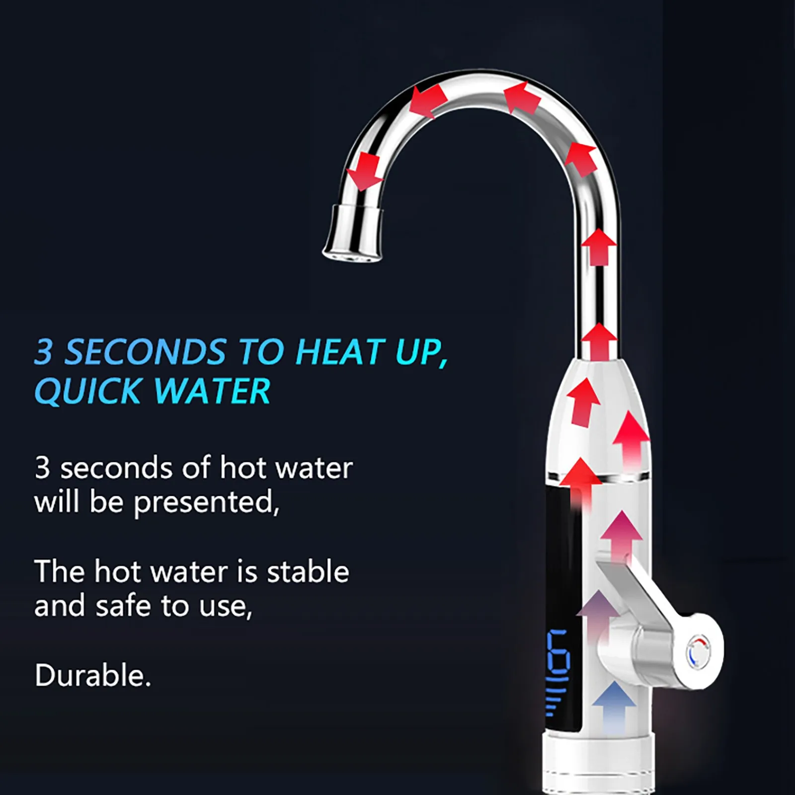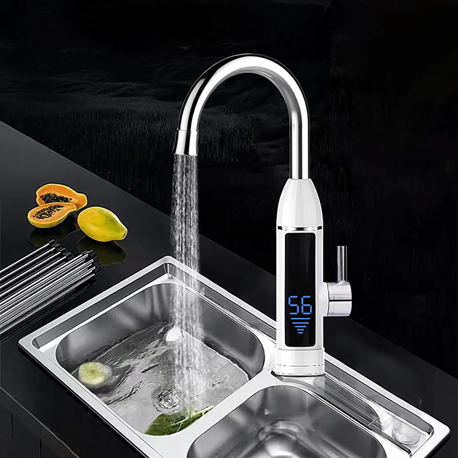 Эффективный, электрический, быстрый нагревательный кран-нет необходимости хранить воду, тем самым уменьшая энергопотребление и экономя деньги. Отрегулируйте рычаг переключения на холодную или горячую воду. Цифровой дисплей температуры воды четко показывает температуру воды, поэтому вам больше не нужно чувствовать температуру руками, что делает вашу жизнь более комфортной. Вращающийся на 360 ° кран позволяет свободно регулировать направление выхода воды-подходит для двойных кухонных раковин. Кран изготовлен из высококачественных материалов, прочный, прочный, Безопасный в использовании и не легко возраст.Продукты включают в себя