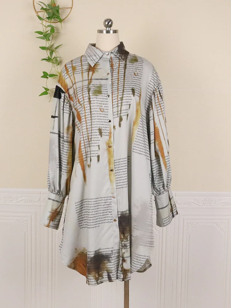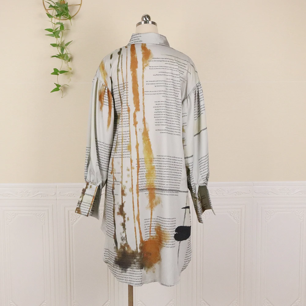 Женское платье-рубашка с рукавами-фонариками, повседневное Свободное длинное платье большого размера 4XL 5XL в африканском стиле, модель Y2K, 2022
