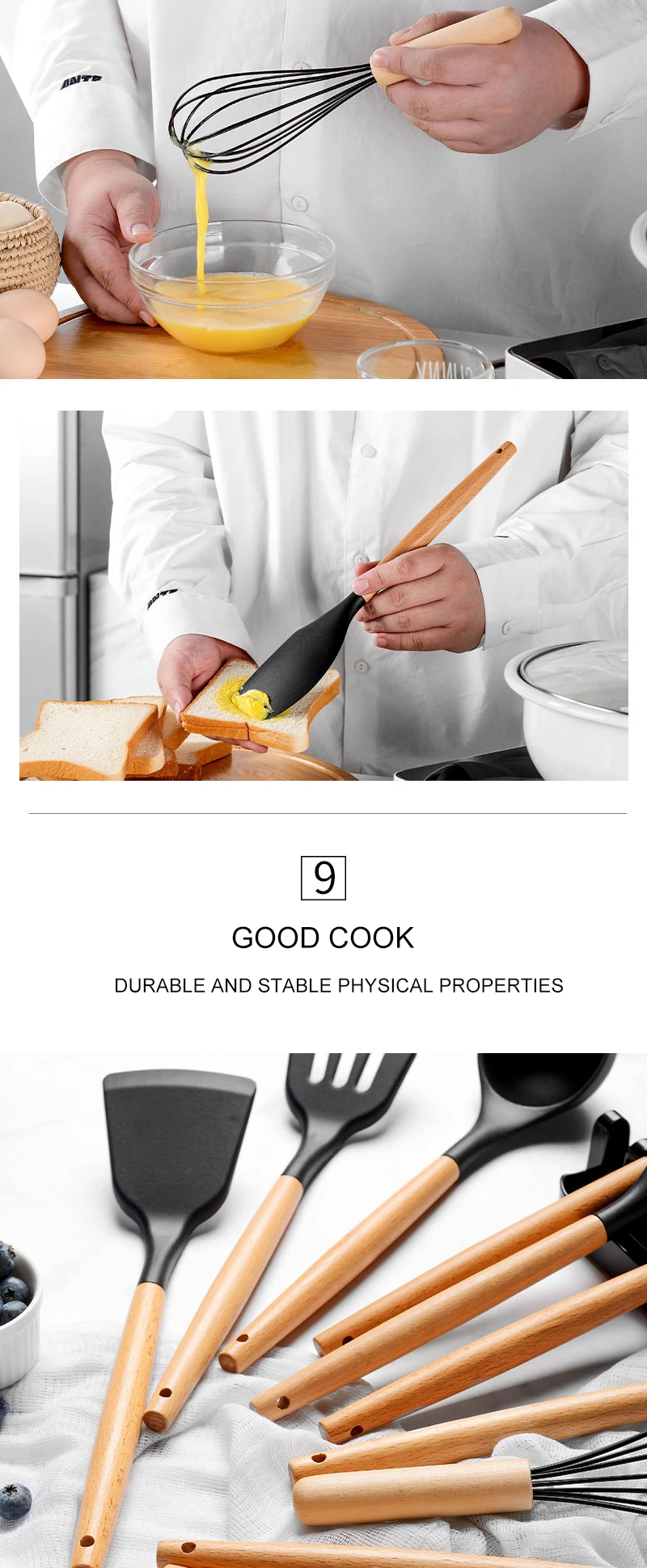 13 шт. силиконовых кейсов Кухня инструменты Пособия по кулинарии комплекты суповая ложка шпатель с антипригарным покрытием Лопата для снега с деревянной ручкой специально термостойкий дизайн