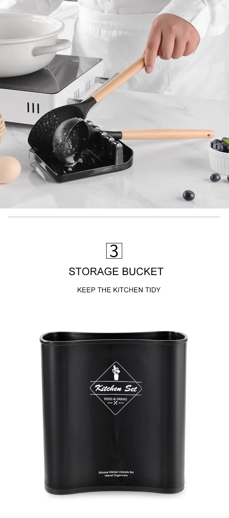 Набор силиконовой кухонной утвари, квадратный бочонок с деревянной ...
